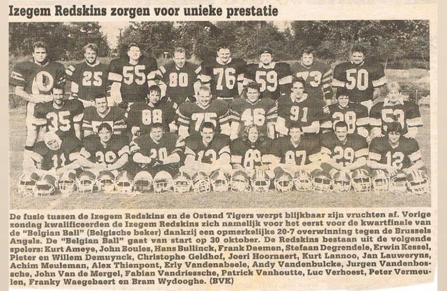 In 1989 richtte Filip Van Overtveldt de Mouscron Redskins op, die in 1986 aan het allereerste Belgisch kampioenschap deelnamen en tot 'officieuze' kampioen werden gekroond. En dat was meteen hun laatste wapenfeit. Enkele ex-spelers, waaronder Rudy Dewaegemaeker trokken richting Izegem en richtten in 1989 de Izegem Redskins op.